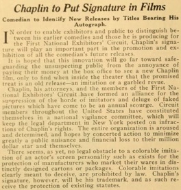 First National Exhibitors‘ Circuit, Chaplin‘s signature will play