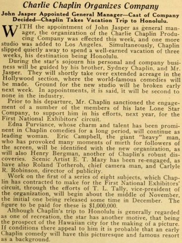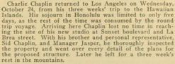 Although Chaplin‘s trip to Honolulu is generally regarded