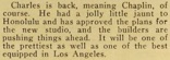 Decided – Chaplin Takes Vacation Trip to Honolulu.