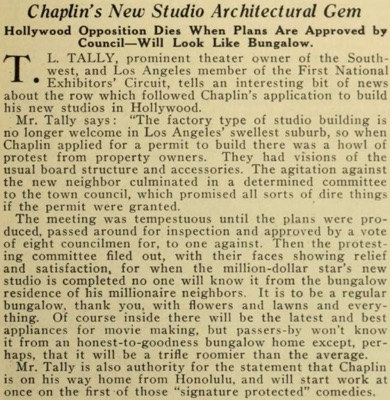 Editorial content. „Chaplin‘s New Studio Architectural Gem