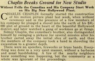 „Chaplin Breaks Ground for New Studio