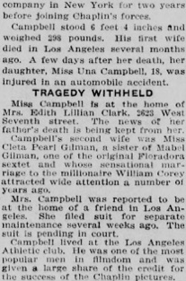 Editorial content. „Film-Mate of Charlie Chaplin Killed