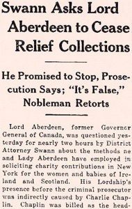 & Swann Asks Lord Aberdeen to Cease Relief Collections
