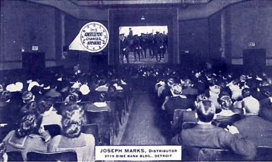 – Distributor Joseph Marks, Detroit (publisher), Bell, audience with screen, postcard, undated, Cinema Treasures