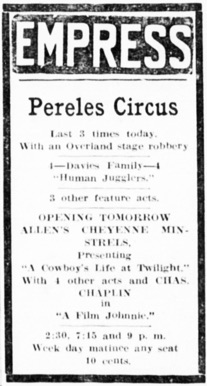 With 4 other acts and Chas. Chaplin in A Film Johnnie.
