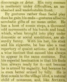 By gestures rather than facial play does he gain his ends – gestures allied to acrobatic gifts of no mean order. He has