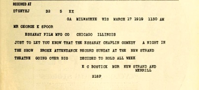 „Western Union Telegram. Milwaukee, Wis, March 17, 1919.