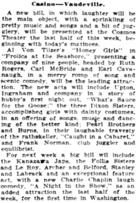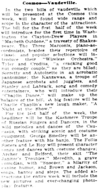 up the balance of the bill. A big feature will be Charlie Chaplin‘s new laugh maker, „A Night at the Show.“