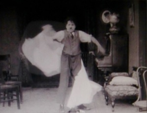 Chaplins erste Frauenrolle, im Kino mit dem Dokumentarfilm The Morning Papers zu sehen. Chaplin,