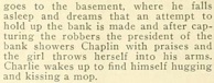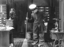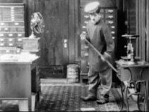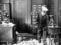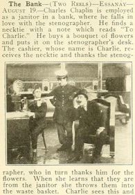 „The Bank – (Two Reels) – Essanay – August 19. – Charles Chaplin is employed as a janitor in a bank, when he falls