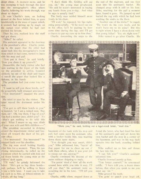 he starts in this bank. Charlie walks importantly down