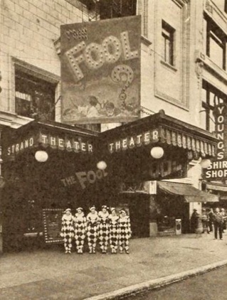 & Illuminated marquee display and costumed usherettes at the Strand Theatre, Seattle, for the engagement of „The Fool“ (Fox).