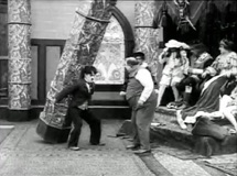 „Charlie Chaplin, in Behind the Screen, Strand.“