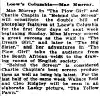 Editorial content. „Loew‘s Columbia – Mae Murray.