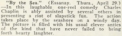 & „By the Sea.“ (Essanay. Thurs., April 29.) – In this laughable