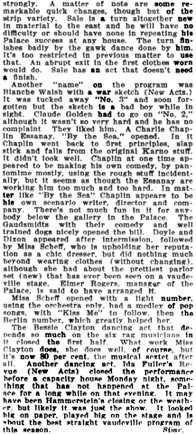 „A Charlie Chaplin Essanay, By the Sea, opened. In it