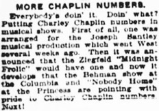 of Charlie Chaplin, in which he is assisted by eight active young women, made-up and costumed to resemble the
