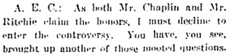 & A. E. C.: As both Mr. Chaplin and Mr. Ritchie claim the honors,