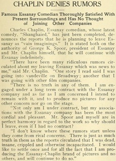 reports that he is planning to leave Essanay as „vain imaginings.“