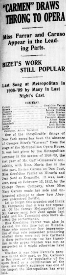 Last Sung at Metropolitan in 1908-’09 by Many