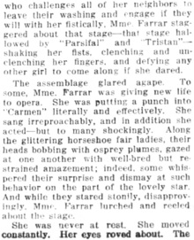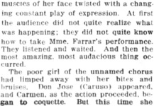 expressed by the musical critics the day following Miss Farrar‘s Charley-Chaplinized performance of Carmen.