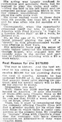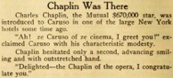 Charles Chaplin, the Mutual $670,000 star, was introduced to Caruso in one of the large New York hotels some time ago.