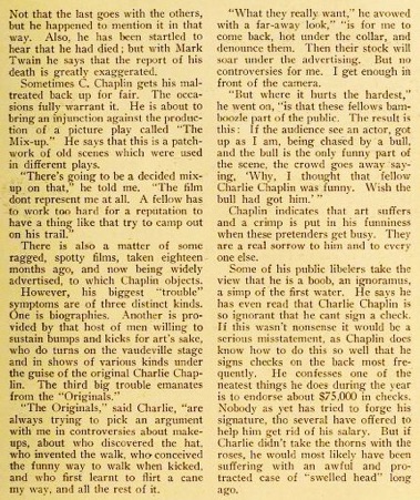 He saw another sign asking, ,Is He Really Charlie Chaplin?‘“