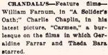 & CRANDALL‘S – Feature films – (...) Charlie Chaplin, in his latest picture, „Carmen,“ a burlesque on the films