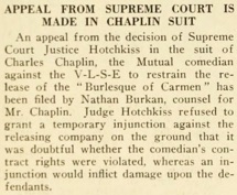 & APPEAL FROM SUPREME COURT IS MADE IN CHAPLIN SUIT
