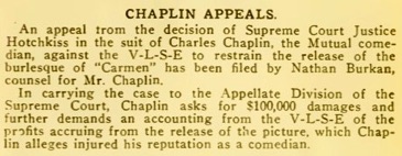 Supreme Court, Chaplin asks for $100,000 damages and further
