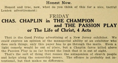 of place, but a Chaplin farce billed above the Passion play