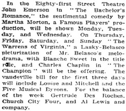 Chaplin in „The Champion“ will be the offering. The Vaudeville bill