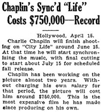 Charlie Chaplin will finish shooting on City Life around