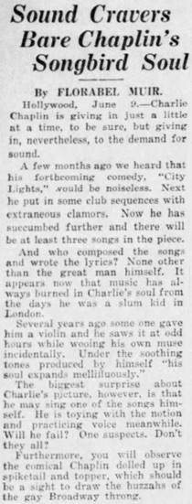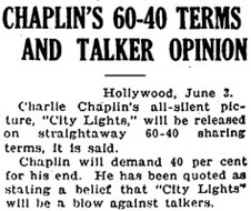 Charlie Chaplin‘s all-silent picture, City Lights, will be