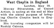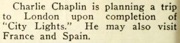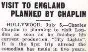 & VISIT TO ENGLAND PLANNED BY CHAPLIN