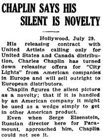 what happens to Charlie Chaplin‘s silent City Lights.“