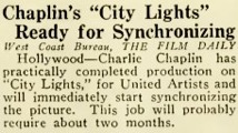Editorial content. „Chaplin‘s City Lights Ready for Synchronizing.