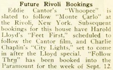 Eddie Cantor‘s Whoopee is slated to follow Monte Carlo