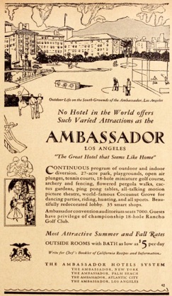 Hotel Ambassador, lobby, Los Angeles, 1930