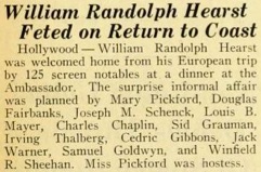 Hollywood – William Randolph Hearst was welcomed home