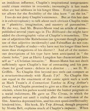 Certainly Stark Young was wrong in seeing Chaplin as too much