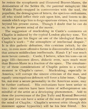 attempt to validate the cult betrays Chaplin. His article is mainly