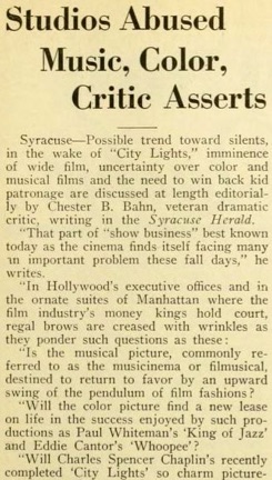 City Lights so charm picturegoers with its silence that the present supremacy of the talkies will be menaced?“ (...)
