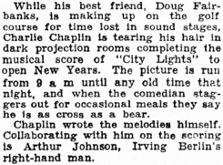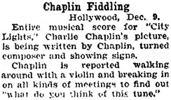 Entire musical score for „City Lights,“ Charlie Chaplin‘s
