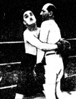 this punch-befuddled little man hanging dizzily to the ring post!