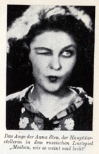 Das Auge der Anna Sten, der Hauptdarstellerin in dem russischen Lustspiel „Moskau, wie es weint und lacht.“