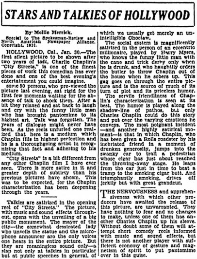 PresentatioN, Los Angeles, Feb. 1931, Discovering Chaplin