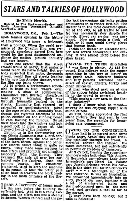 Hollywood, Cal., Feb. 1. – The most famous opening