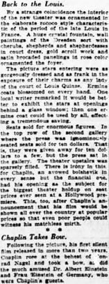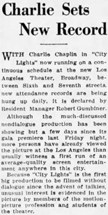 CHAPLIN IN „CITY LIGHTS“ ALSO BIG STAGE
