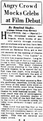 ever seen at a Hollywood premiere. This, too, after Chaplin‘s